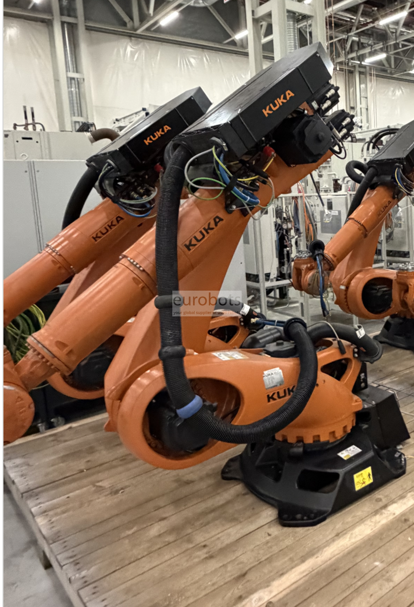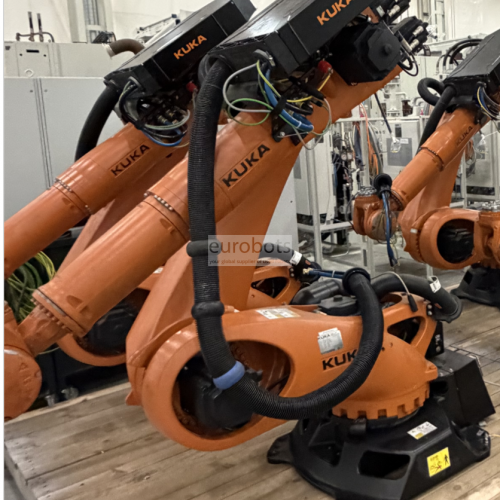 Industrial robot KR150 R3700K Shelf six axes. It's fast and precise robot with a payload capacity of 150 mm and arm range of 3.700 mm, it has a repetition accuracy of less than ± 0,06 mm. Suitable for general handling, arc welding and machining operations that require short time cycles.