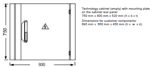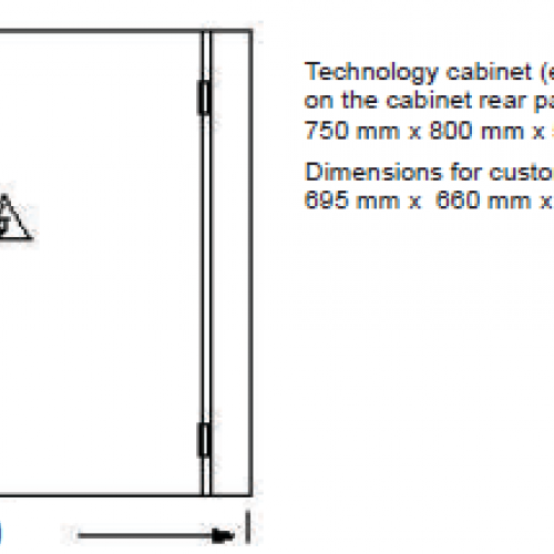 The technology cabinet fastened to the basic cabinet is an empty top-mounted cabinet for special equipment of the customer. In the top-mounted cabinet there is no active cooling system. The heat